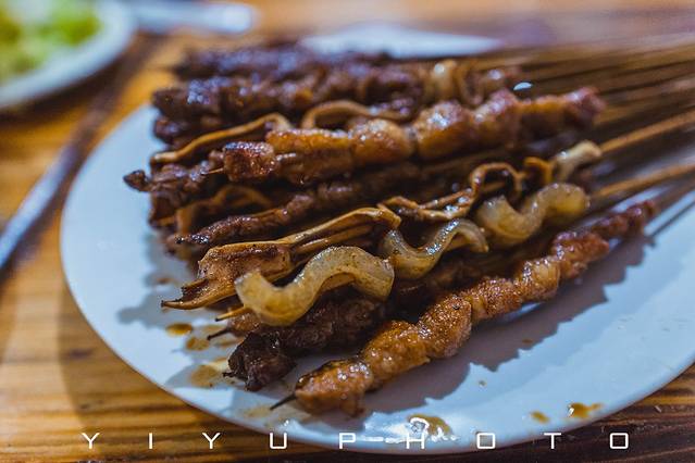 过了饭点大家都有点饿坏了,迫不及待点了些烤串和特色菜就开始大吃特吃起来,云南喜鲜辣,所以这里的烤串辣劲十足,尤其是鸡胗,辣到狂喝啤酒~~第一次吃甜味的烤串,不腻又解馋。98年到现在近二十年的老店,味道超赞!这才是地地道道的深夜食堂啊~
