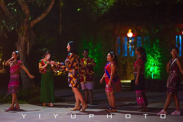 吃饱喝足我们唱着歌跳起舞,一开始大家都很羞涩,不肯上前,可看着这样令人放松愉悦的气氛,谁人能够不动容,一起欢歌放情享受深山中的情谊,随着那烈烈燃烧的火苗,在这深夜闪耀~树梢上,一轮圆月皎洁,宁静美好。