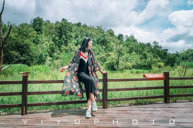 这张是还没进山林拍的一张工工整整摆拍,后面的照片几乎都是头发凌乱满头大汗格外狼狈,能笑出来也就不错了,而且妆都花了完全不想拍照~~