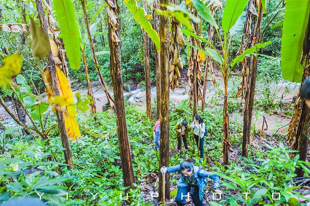 路上我们爬上接近90度直角的陡坡,上上下下的蜿蜒前进,为了赶在天黑前走出丛林,没有人抱怨,大家都互相帮忙搀扶的渡河,爬坡,向导也一直在给我们打气!终于我们做到了!