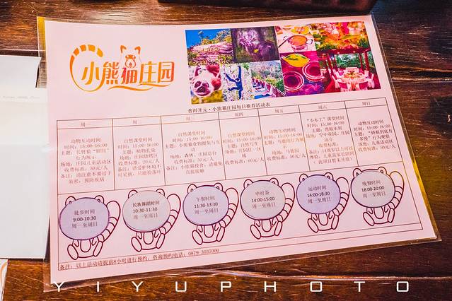 饱饱一餐吃的人昏昏欲睡,我们接下来入住附近的小熊猫庄园,安放行李准备一下接下来的丛林穿越。发现房间里有一张宣传单拍给大家,这里很适合带宝宝亲子旅行,贴近大自然,了解自然的奥秘,动手做一些木工,都是非常难得的体验。