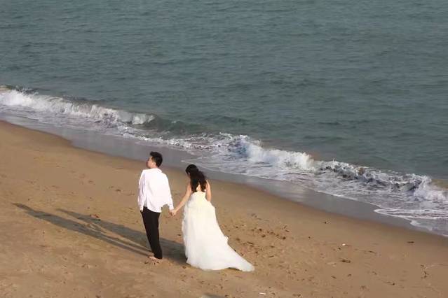 到的时候是下午两三点,天气还不错,海边有很多照婚纱照的