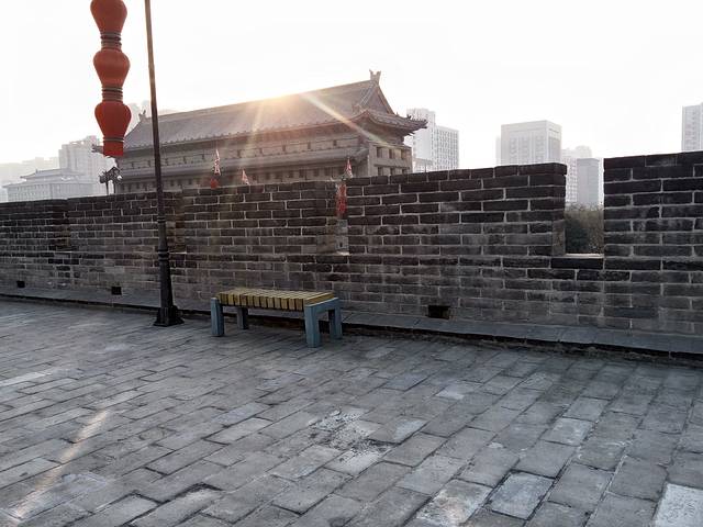深圳飞咸阳机场。下午到达,下了飞机迫不及待的杀进西安城,第一个目标就是要在夕阳中漫步西安城墙!如愿以偿站在城墙上,触摸着这些千百年前建成的城墙砖石,看着一些钟鼓旗帜,彷佛能看到千百年前一队队士兵在这城墙上巡逻而过,........在这夕阳余晖下梦回长安。