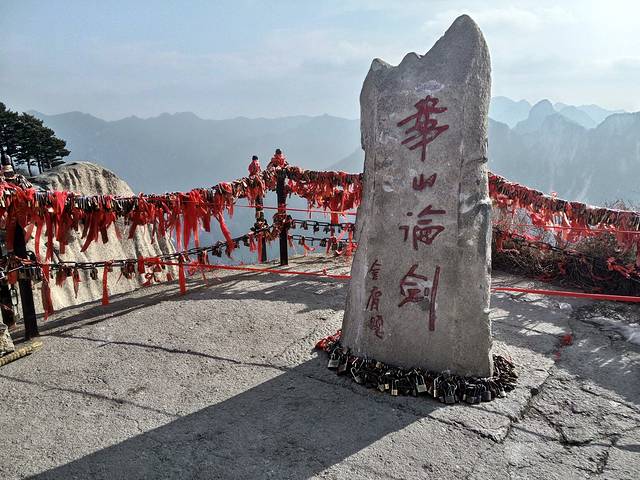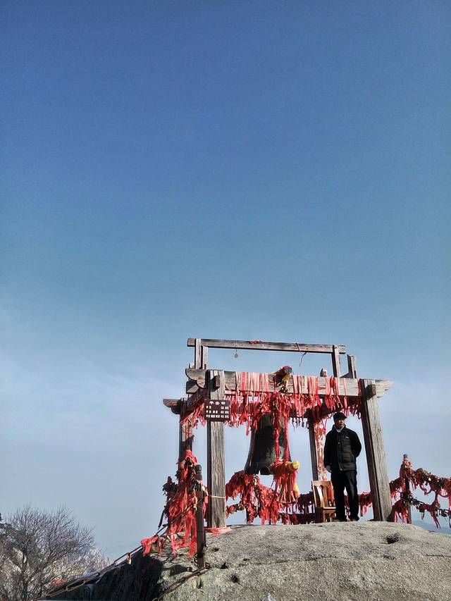 一路上有几个特别有意思的地方:第一个就是武侠小说中的华山论剑,今天终于来到原地,哈哈!也算圆了儿时的武侠梦了!第二个是一个大古钟旁边有一位老人家(敲钟收费的,我也敲了哈哈)在蓝天白云下这幅画面,很有意境。第三个就是出了名的长空栈道!悬崖绝壁上的长空栈道,超级无敌棒棒哒!一定不要错过噢。哈哈,恐高的朋友就算了!