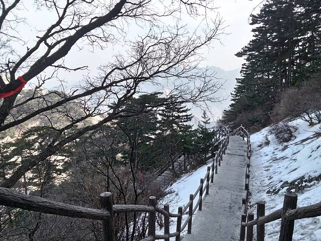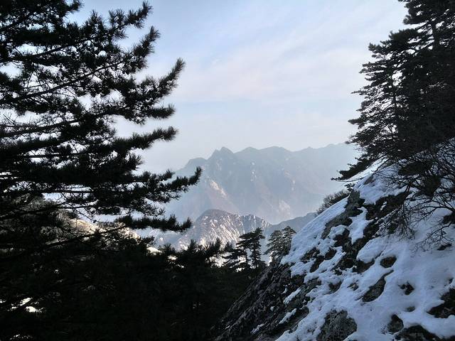 第三天,告别三个漂亮的小姐姐,独自一人出发华山!坐索道上山,远远就看到了华山的面貌,美的像一幅山水画,美的让人觉得像假山一样。下了索道,一路往上爬,山上还有一些积雪,为华山增添几分色彩。