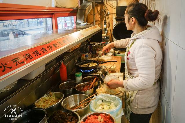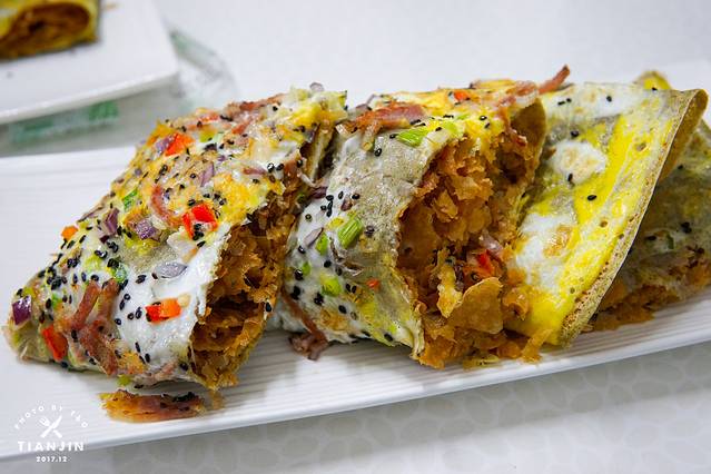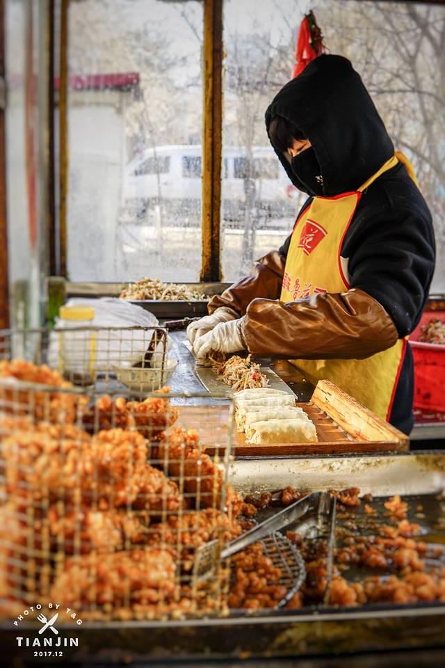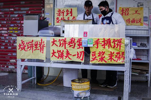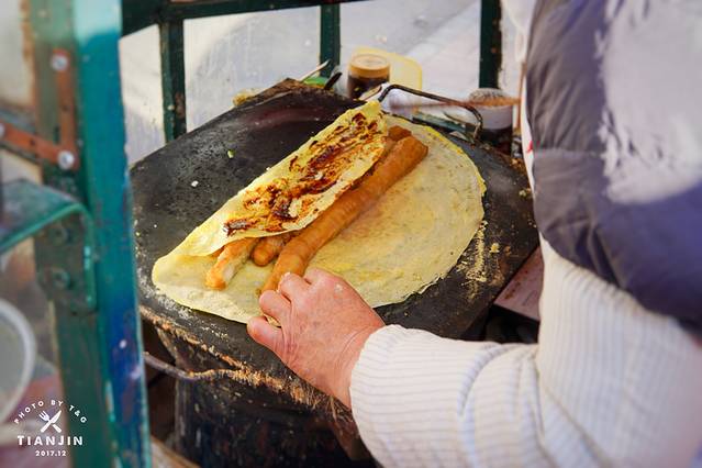 在天津,不需要推荐任何煎饼果子店,随便个居民区、大街小巷、菜场集市都能找到煎饼果子摊。天津的煎饼果子已经不简单的是早饭了,而是天津人的情怀。