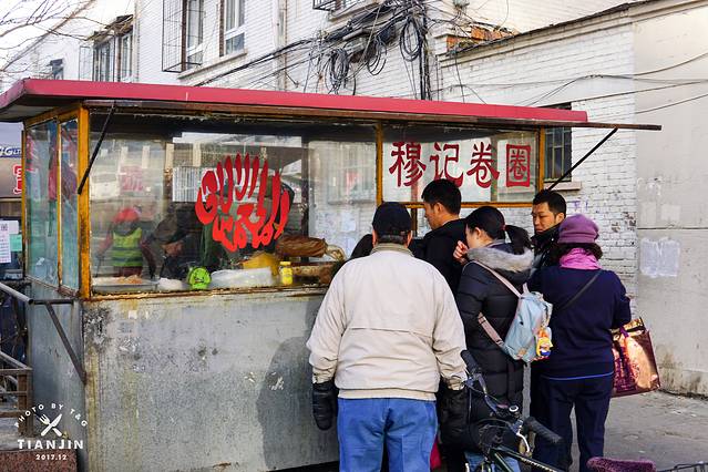 现今,天津街边卖卷圈的已经不多见了,位于西北角的穆记卷圈,还在坚持着只卖卷圈,人气很高,常常需要排队。