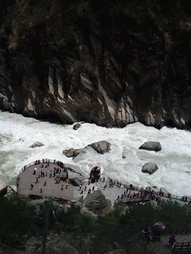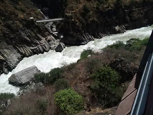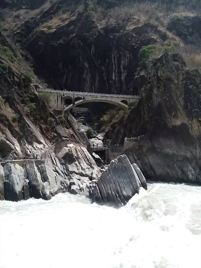 虎跳峡,汹涌澎湃的河流冲击着两岸,吓得宝宝我拍照都哆嗦起来了。不过,真的特别壮观!不信站在玻璃桥上来试试看!