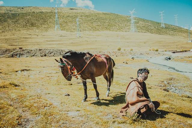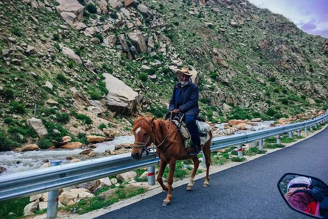 新都桥当地牧民,看我们停下拍照便过来了,说拍照不要钱,不知真假,反正我们没有去骑马。