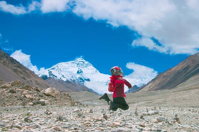 如上珠峰前,我担心上去的路不好,担心小黑爬不上去,担心海拔太高高原反应,担心天气不好看不见珠峰,担心两人都感冒了怕高原反应,然而一切都很顺利,我居然生龙活虎的在大本营跳跃了起来,我居然在大本营搬了好多石头码字,一切都是最好的安排。