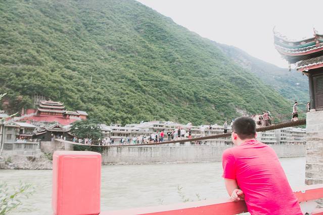 我坚信谁对泸定桥的印象深刻都是起源于课本中的飞度泸定桥。不亲眼见到这铁索桥,就永远无法勾起小时候对红军的崇拜。其实铁索桥建于清康熙四十五年(1705),桥成后康熙帝赐名为“泸定桥,置县时便以桥取县名。所以特别好奇那时候的人是怎么在大渡河上修的泸定桥。