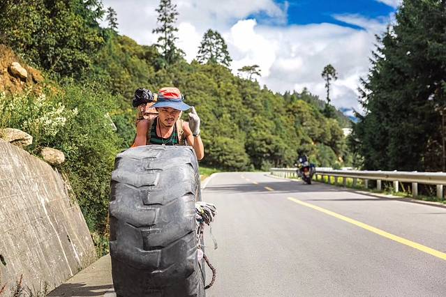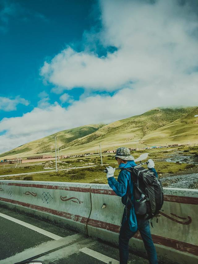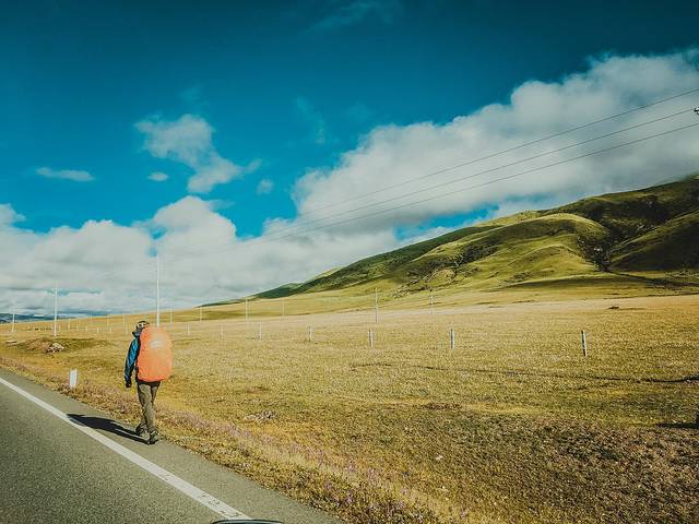 一路上的背包客,徒步到此估计已经不知道多少天了。