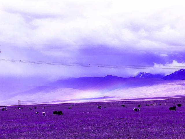 一片片紫色的小花加上牦牛(行走的金子)加上远处的铁轨加上彩虹真的就如一幅画一样,但是由于停车不方便,都没能下去亲吻大自然,一切照片视频都是用手机拍的。简直是大爱。