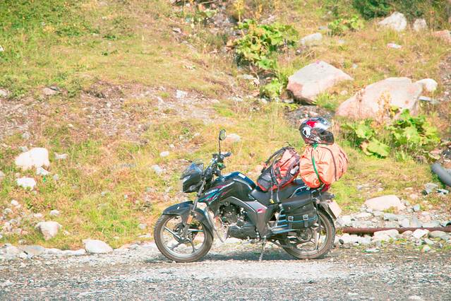 豪爵150,此行最重要的角色,靠他驮着我们倆和一堆行李行天涯,懂摩托的听到这个消息一定特别心疼小黑。行前为了省钱买了这个排量不大的普通摩托,因为木木说只要想去,没有什么车是不行的,毕竟路上还看到骑小黄车的,可是当他以10多码的龟速前行时,我们都后悔了。小黑加油,小黑加油,这是此行对他说的最多的话。