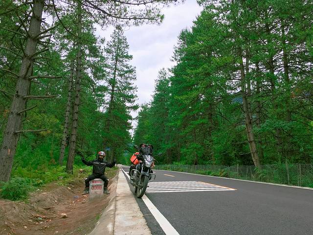 “高德叔”“我们亲爱的高德叔”,我们敬重你,我们依赖你,我们爱你,我们恨你。高德高德,你怎么能知道这么偏僻的小路,高德高德你为什么没有提示路况,高德高德,即使调换成志玲姐姐的声音也不能将我们从你带入的坑中解救出来。第一天就被高德导入了一段长达二三十公里的大包小包、大坑小坑的山石路,而且是一路下坡,而且一路悬崖,而且看不到尽头,而且荒芜人烟,而且没了信号……这条路完全可以用“大坑套小坑,小坑套老坑,坑里还有水,水里还有钉,下去就没影”来形容。山石被雨水冲刷之后都露出了尖尖的头,特别容易摔车,有一段路特别险,我下车走了一节。在路上总会遭遇绝望,可是万万没想到还未出重庆,就在家门口陷入了深深的绝望。在那段路上的两个多小时犹如好几年,恐惧袭来,但是没有退路,只有小心翼翼地相信着不想信任的高德往下以10码以内的速度滑行,我一害怕就开始各种碎碎念,木木酱一直稳重沉着的慢慢开着车,直到开到能听见火车鸣叫,能看见人烟,能看到水泥马路时,看到了劫后余生的希望。当希望来临时,放松了警惕,摔了车。我充分发挥了身体轻盈的特点,直接飘下来了。当时最恐怖的是害怕木木酱被摔坏,那时候,安全就是幸运。爬起来的他淡淡的说了句“完成了【进藏第一摔】”。what are you 弄啥嘞?吓坏宝宝了好吗?好的。离开小路进入合川,从三汇镇上了G319,经过合川-铜梁-潼南,从乐至(柠檬之乡)上了G318,简直感谢国家感谢党,感谢要致富先修路。一边开一边狂喊:这才叫国道啊。经历了兴奋—绝望—希望—最后成功到达第一天预定目的地简阳市,第一天骑行330km,只是屁屁一直在反抗,我在日记结尾深切的写下:希望接下来不摔车就好,并默默祈祷。