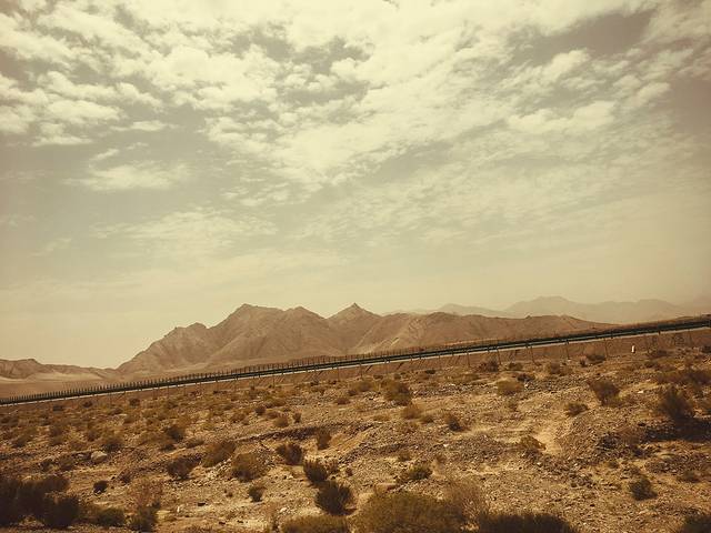 到了萨迦古城后,318国道被封了,大字写着:318国道由于加错拉山地震被损坏正在修路,改走X402。于是我们浩浩荡荡的跟着导航走上了小道,之前走过很多景美路好人少车少的西藏小道,于是前途的坎坷连一点预测也没有的就出现在了我们面前。是的接近80公里的搓衣板路,这对于没有走过这种路的你们看起来一定很美妙吧,我给你词穷的描述一下,自行拿出家中平时老婆罚跪的搓衣板自行模拟。搓衣板路,顾名思义,就是形状和搓衣板一样的路,几厘米一条横杠,而且那么规律那么密集的横向沟壑,我们平时经历的土路好歹也是竖向沟壑。宝宝心里苦啊。横向沟壑,走一步抖二抖,我们以龟速前进着,忍受着PP的疼痛,慢慢沿着搓衣板骑进了戈壁荒漠,周围还有各种沙化的迹象,不过,现在回过头来想想景色还是很美的,全是大风景,但是那时的我们失去了导航之后骑行在看不到尽头的搓衣板路上,一心只想赶紧骑到搓衣板的尽头……而且时间真的不早了,这样的速度,不知道这样路况的路还有多长的我们真的一刻也不敢懈怠,只能保留着彼此内心的绝望感继续向前。