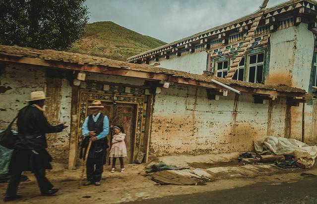 爬到的不是山顶而是云端,云也不再是触手可及,而是身在云海中,骑行在云端,回看如美村、澜沧江和来时镶嵌在半山腰的路带,内心又是惊恐又是喜悦。路遇背包徒步的、骑自行车的、磕长头朝圣的,一路激动的给他们点赞,同时我们也接受着别人的赞,也许这就是这条路上相互鼓励的方式,陌生人之间互相生出敬意,又共同生出对这个大自然的敬畏。图中的藏族小女孩儿朝着我们高喊扎西德勒,就有一种莫名的心动和感激,感激他们的淳朴,感激他们虔诚的信仰,感谢他们略显粗糙却无比鲜活的生命力。