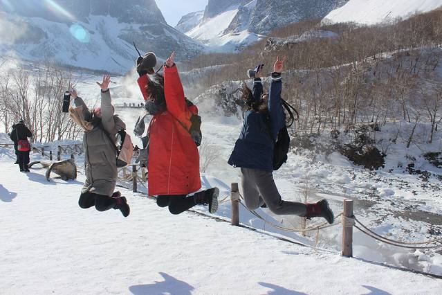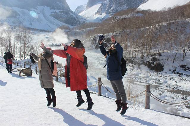 大概是在某一个下午,我给岑打了个电话(还是发了微信,忘记了)说寒假想去旅游了,她问我想去哪,我说想去东北,想去长白山想去跑温泉想去哈尔滨的冰雪大世界...。她就说她也想去,一起去好了。然后就爽快的敲下大致行程。后来,微信发了给吴琛说起了这事,问她要不要同行(其实我是没有抱希望她会来的),结果她说和妈妈商量一下,后来给了答复,说好。