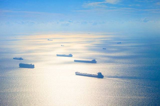 我喜欢在飞机上拍窗外,快到新加坡,看到下面海中一艘艘船,在太阳逆光的照射下,像幅画。