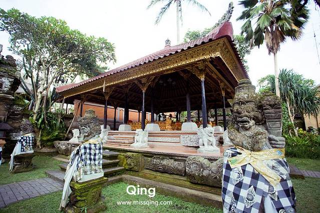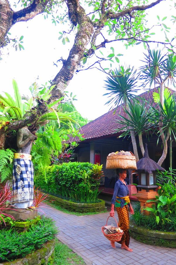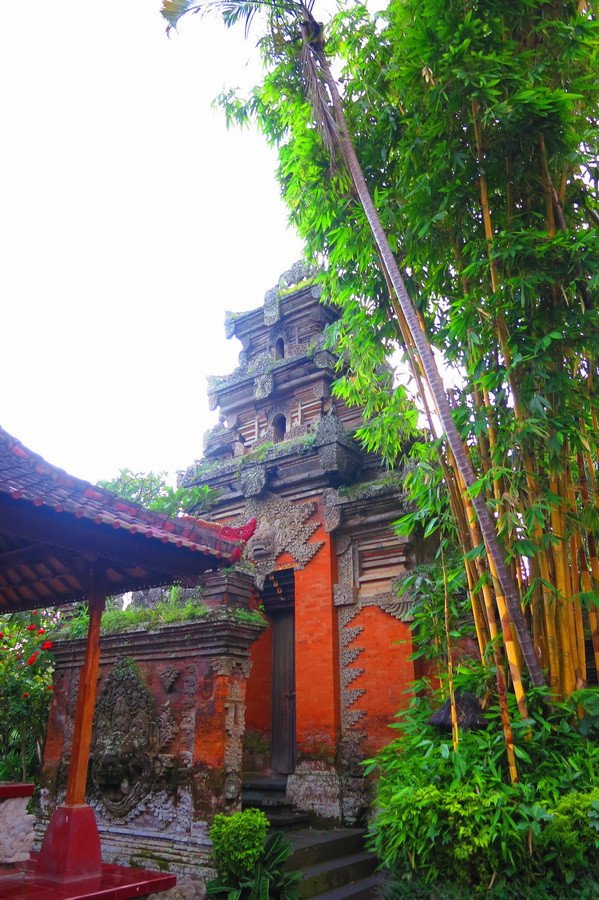 在巴厘岛上,好像人人都是艺术家。他们随便就能把一些很简朴的自然素材组合成一个漂亮的景致,又或是像皇宫里这样,把朴实、繁美结合得天衣无缝……