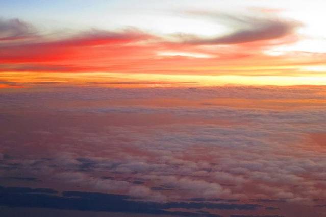 办理好登机起飞时,已经快七点了,外面的天空还没有黑,云层和暮光像是变得庄严起来,还是那么美。