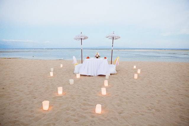 每天晚上酒店就会在沙滩准备一特别美的座位,地上摆着蜡烛,从酒店延伸到餐桌,走在中间,感觉自己像公主。