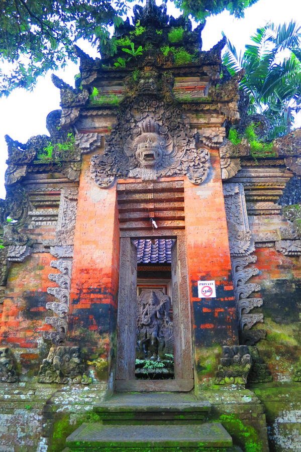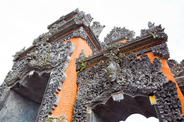 这是善恶之门,它是巴厘岛上独有的建筑形式。两座完全对称的“门”直插云天,进入神庙的台阶从中间穿过。这两扇门分别代表善与恶,它们完全对等的形式表达了巴厘人的观念:认为善与恶都是客观存在的,不因人的好恶而消长,因此对善恶持同等重视的态度。