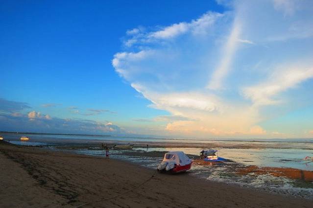 吃完,我们用手机的地图走了五分钟到了库塔海滩,沿路全是各种民宿和酒店。库塔的海滩沙子并不是很细腻,夜晚只听到海浪,一对情侣相依偎的坐在沙滩边,我们飞了一天比较累,经过超市买了点蚊香和矿泉水就回去睡觉了。