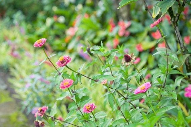 水神庙周边有条道,沿路都是高高的大树和各种花。