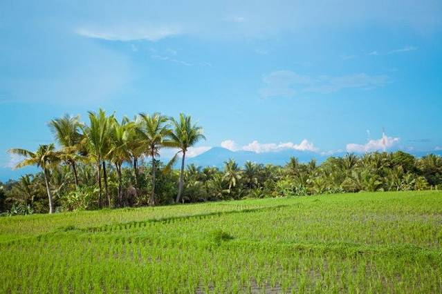 去海神庙的路上,还是有很多美丽的风光,我让司机停下来,拍了些照片,椰树长在稻田边椰树巴厘岛一大特色。