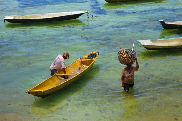 我们进出岛都是靠在水里步行上船的,别担心,水不深,而且还蛮好玩的感觉。