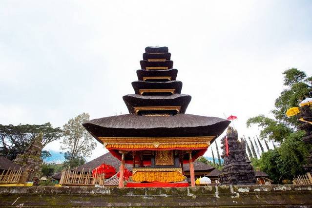 这就是水神庙,位于百度湖(Danau Bratan)畔,半印度教、半佛教风格。该寺庙为水神庙,供奉和祭奠湖泊女神达努(Dewi Danu),是当地人的精神寄托。