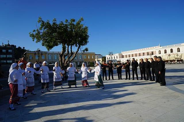最让我们印象深刻的,还是在最后一天下午,我们按照市政厅的安排来到市中心的索罗莫斯广场,在这里,三个当地的音乐和舞蹈组织已经在这里等候我们。