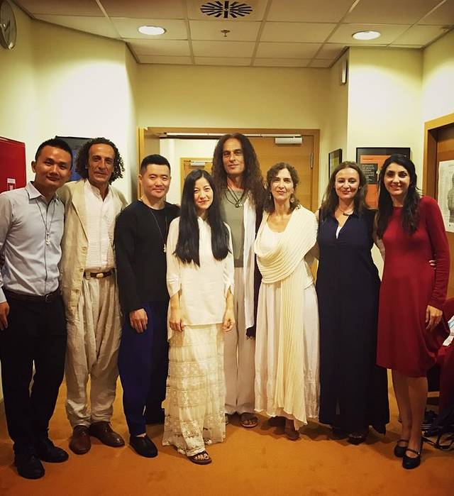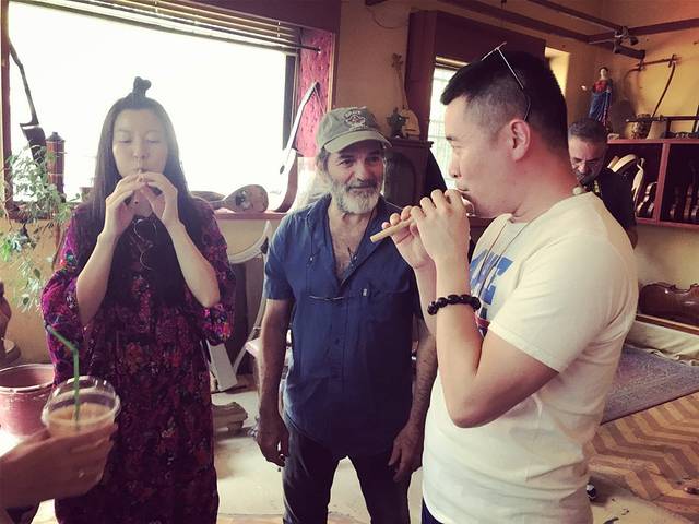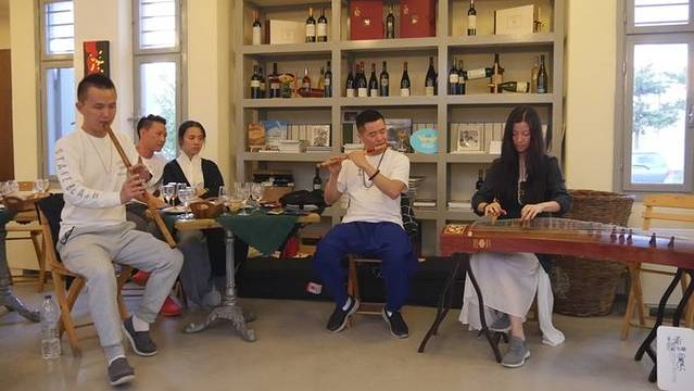 希腊人的认真与随性在这里表现得很明显,他们既非常认真地做好准备并准时在这里等候,又很随性地告诉乐行可以让他们做什么就做什么。于是这场艺术交流就这样随性地开始了,我们也把古筝架好,先听Mandolinata为我们演奏了传统曲目,然后常静和张笛与他们一起尝试即兴。