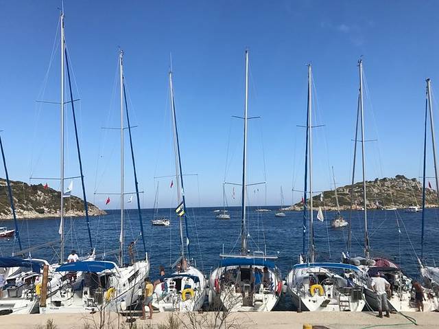 中途我们在伊萨卡的小码头停留休息,清澈的海水让我们惊喜不已,好几位直接就跃入水中畅快地游起来。