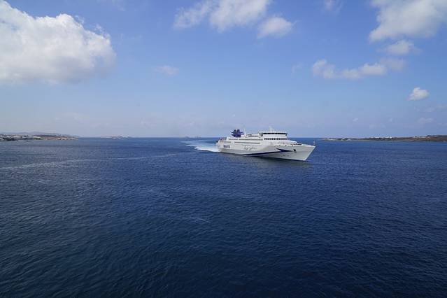 从雅典到圣托里尼的渡轮有快船和慢船两种,乐行根据经验为大家选择了慢船,尽管时间稍微长一些,但船在航行中很稳,大家也可以到甲板上去饱览爱琴海风光。