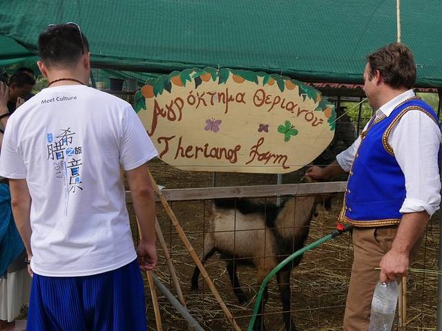 我们到达农场时,Therianos一家人已经等了我们很久,老太太做了一桌丰盛的当地菜肴,Therianos先生和他的姐姐也拿出了自家酿造的葡萄酒,请我们大家品尝。他们家的葡萄采摘之后会放在太阳下面晒去一些水分,这样酿造出来的红葡萄酒就会比一般的更甜,我们都很喜欢这个口味。