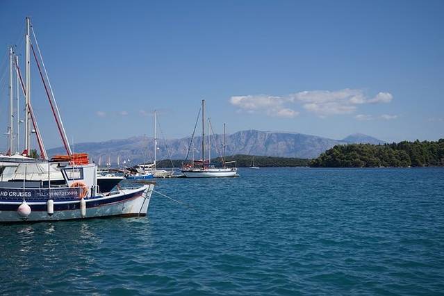 由于没有航班或者渡轮直达,所以我们选择了包租了一艘游艇,从莱芙卡达出发前往扎金索斯。对于国内大部分朋友来说,乘坐游艇仍然是很难得的经历,既会感觉很新鲜,但也会有不适应的问题。