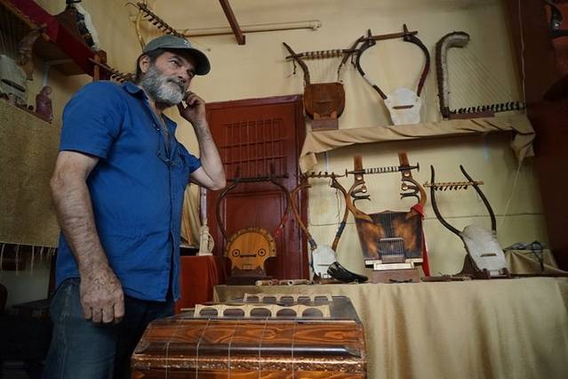 在享受了美味的午餐之后,大家穿过小街巷来到了Nikolaos Bras的工作坊。Nikolaos Bras是乐行的老朋友了,他也被大家认为是希腊最优秀的乐器制作师,其作品不少被博物馆收藏。