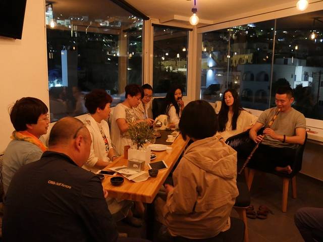 有酒有美食,还有岛上的艺术家一起交流,我们也摆出了古筝和笛箫,与希腊朋友们开始了音乐的对话。