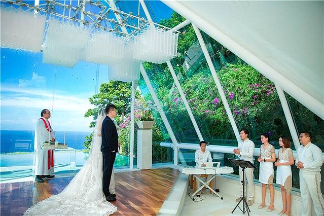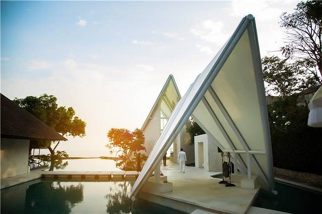 巴厘岛的婚礼场地众多,3万高性价比的场地首选无疑就是水之教堂婚礼(Tirtha Chapel Wedding),水之教堂(Tirtha Chapel)是巴厘岛顶级奢华教堂之一,位于乌鲁瓦图的悬崖上,其独特的造型如白蝴蝶般停在蓝宝石色的水面上,水面的尽头则是一望无际湛蓝的印度洋,地理位置绝佳。