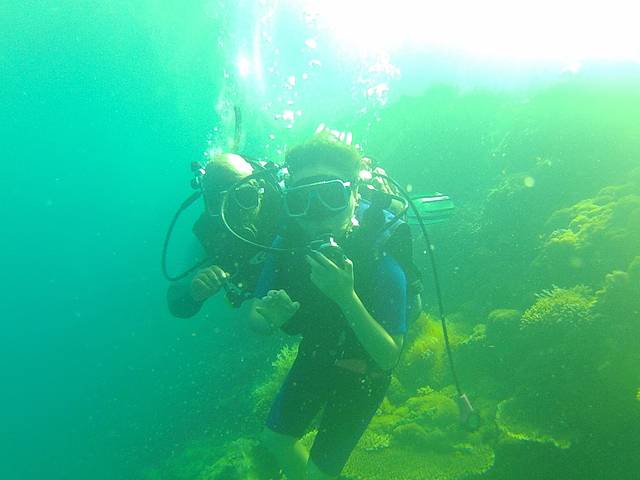浮潜250p/人 面罩另算价格 最后降价讲到250p/人,包含所有工具。潜水分深潜和浮潜,没有潜水证的情况下,教练会带你体验深潜,也就是说你无需游泳,教练会一直提着你往水下走。