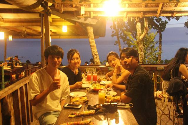 在邦劳岛住的是Hotel Bee Farm。虽然仅有3星级,但是住这儿太有趣了,房间也无敌大,我们住的H1,有3张沙发,2张大床,睡7个人都没问题。窗外是悬崖海景餐厅,很多到岛上的游客,即便不住这儿,也会特意坐20分钟tuktuk车来这看看。由于这里真的很天然,很原生态,所以蚂蚁比较多,但是房间里还好,只是偶尔有壁虎出现,半夜会把我吓到。