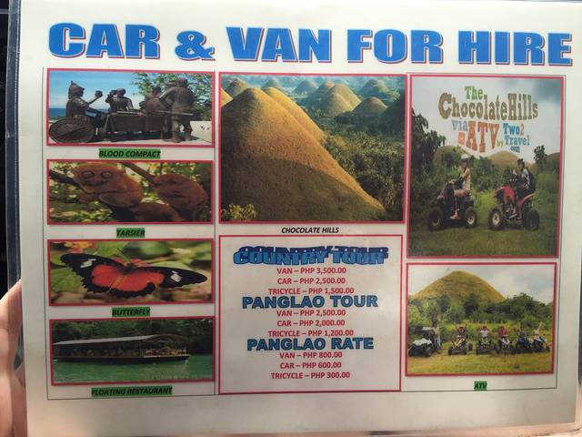 跳岛游得包船,我是向酒店直接预定的,一艘船是2500p,这个费用可以在退房时一起结算。如果你在alona beach那边找船,是可以讲价的。