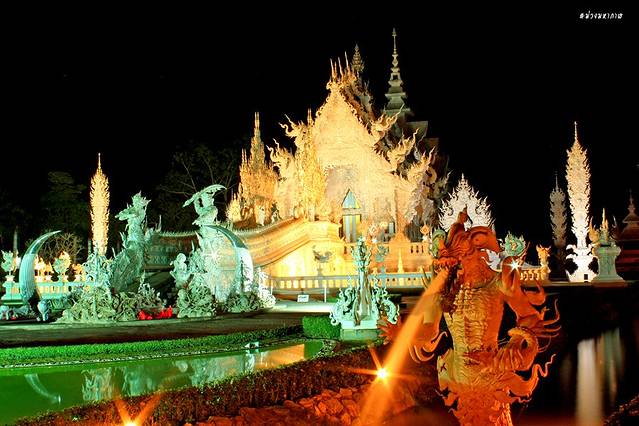 相传有一天佛祖降临在他的梦境中,并指给他一片洁白如雪、银光闪闪、晶莹剔透的白色寺庙群。他为这美景所折服,而佛祖对他说:你的责任就是要建一座洁白的寺庙。当Chalermchai从梦中惊醒后,立刻执笔将那圣洁的美景绘出一座“万佛之都”,一座人们从来没有见过的寺庙。白庙从此开始便在施工建设,到现在仍然还在施工之中。