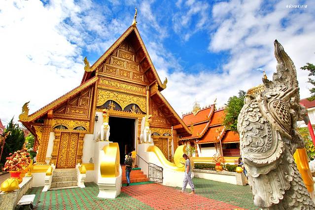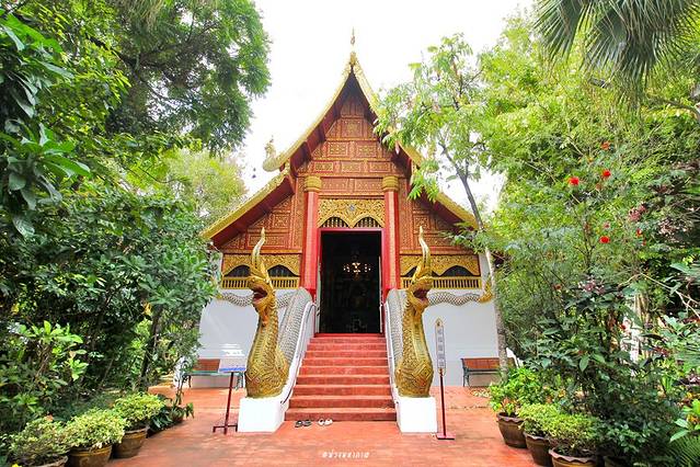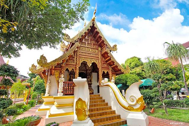 这座寺庙据说是模仿清迈帕辛寺建造的,当然规模没有清迈的大,庙内的壁画以古代的服饰和风俗为主题,是泰国北部传统艺术的特色之一,很值得一看。