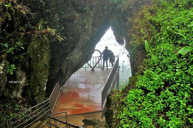 沿路上山看到另一个著名的景点,很多情侣在这里拍照,这是岩壁天然形成的一个洞,据说情人牵手一起穿过这个洞,便会得到坚固如石的爱情。