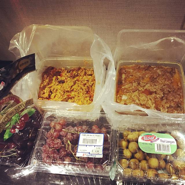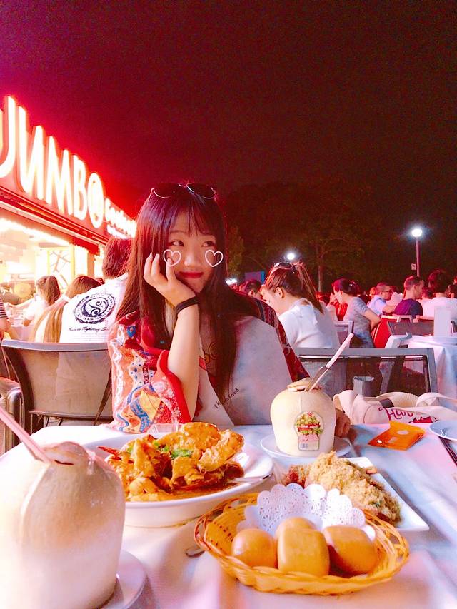 下午3点多拿完行李到了酒店,新加坡姐姐给我们买了娘惹咖喱牛肉和蛋黄鸡,还有车厘子葡萄龙眼,都很好吃啊,但是蛋黄鸡的味道有些吃不惯。休整一下7点多就去了摩天轮