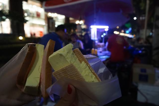 又便宜又好吃,推荐榴莲味的,可以选择用面包或者华夫夹。