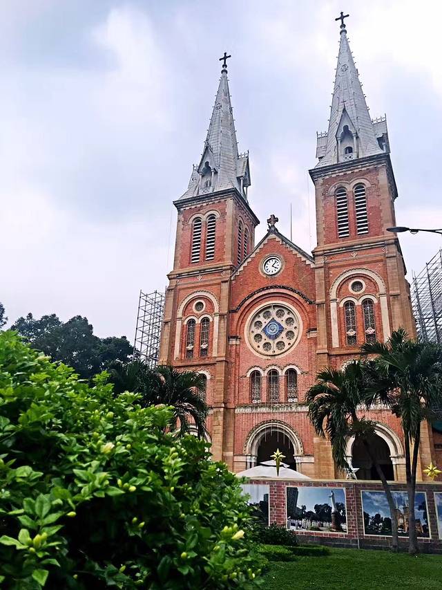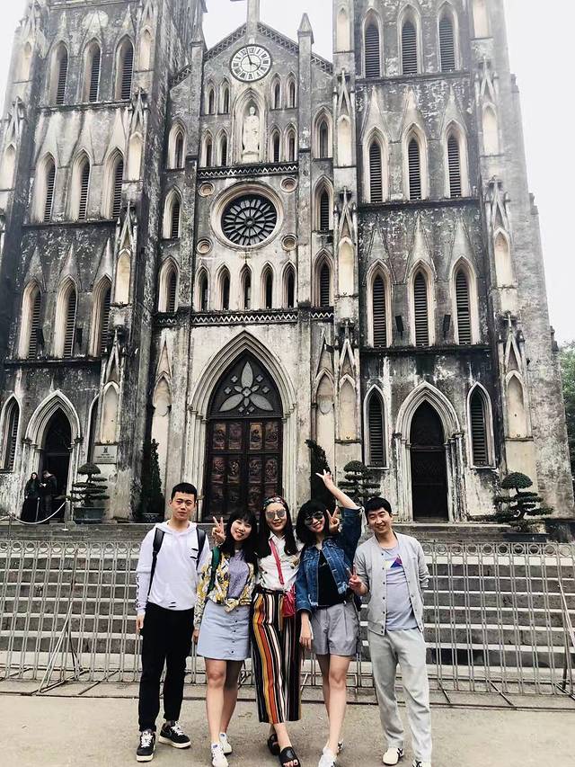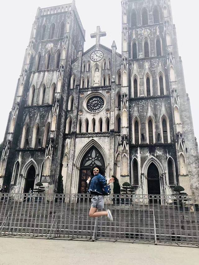 吃完就去看看景点,我们旁边就是河内大教堂。河内大教堂是河内最古老的教堂,据说是仿巴黎圣母院兴建而成,真的很具中世纪古风,也是河内很具代表性的法式建筑。游客照来也~